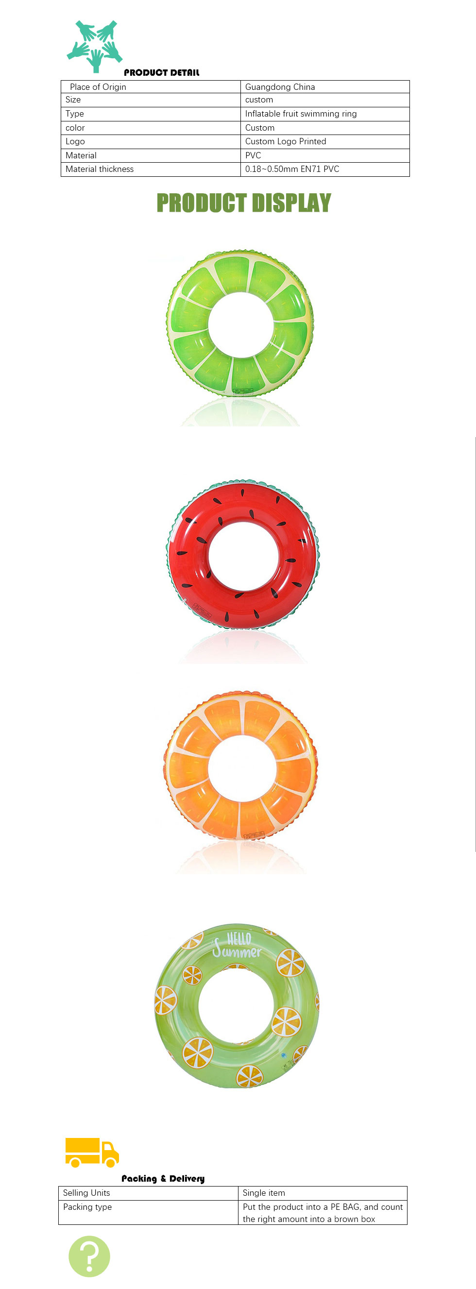 Groen PVC Beach Party Pool Blaadbare fruit zwemring