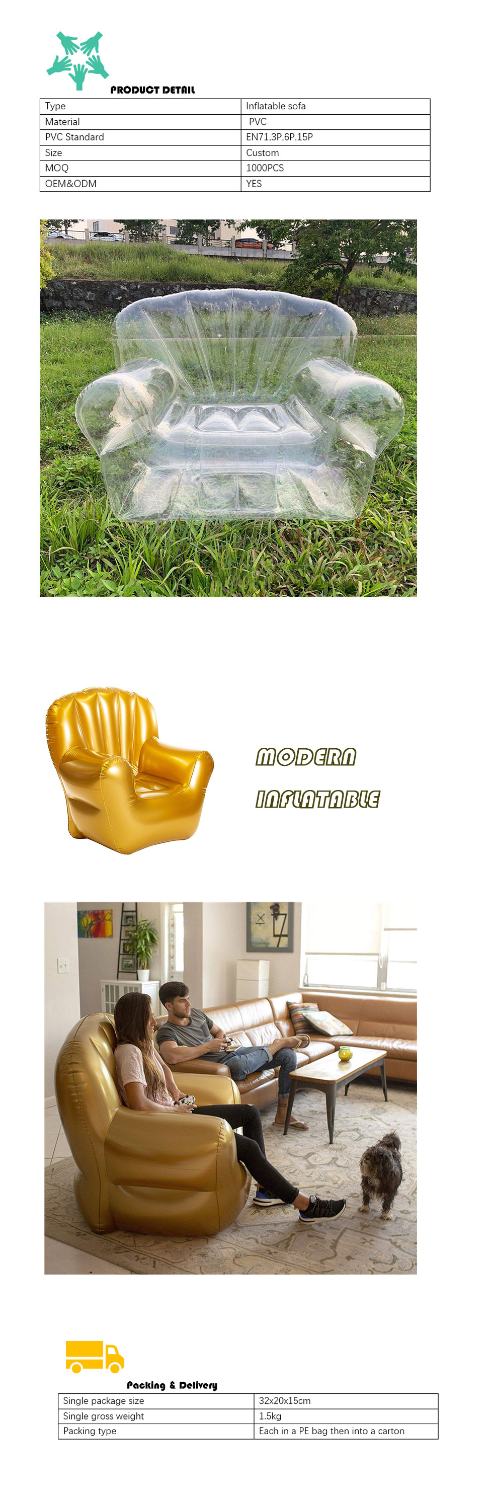 PVC transparante opblaasbare sofa, buitenslagkamer balkon vrije tijd, enkele opblaasbare opvouwbare stoel